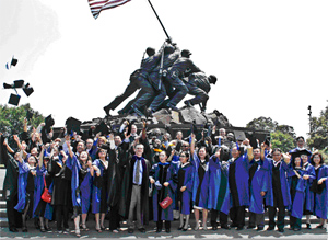 At the conclusion of the ceremony and reception, the graduates gathered at the nearby Iwo Jima memorial for a group photograph.
